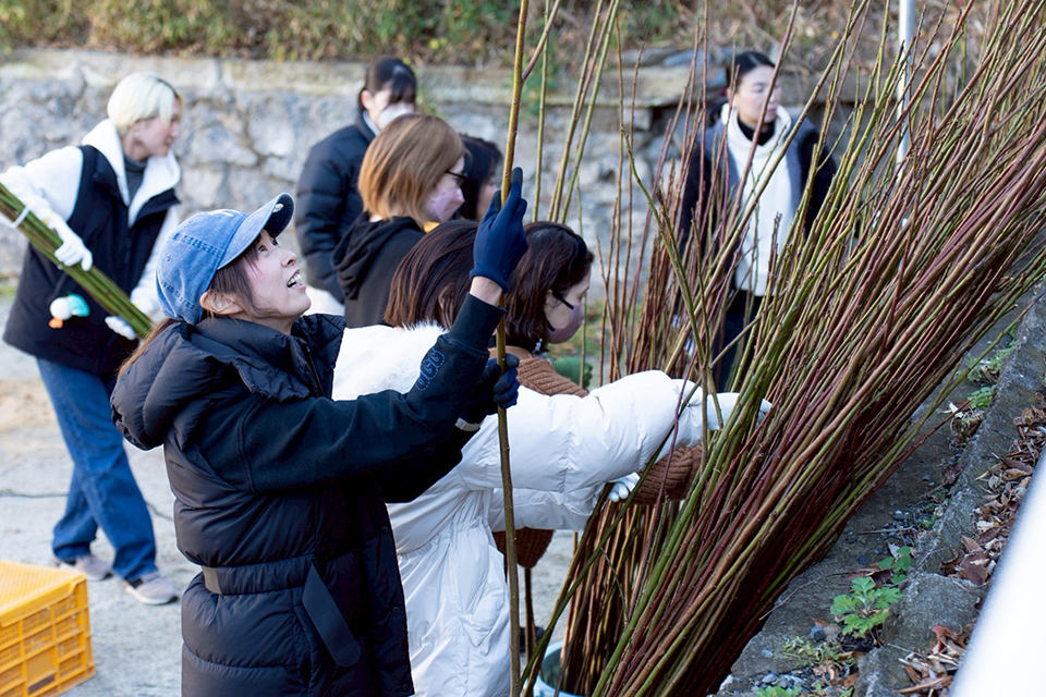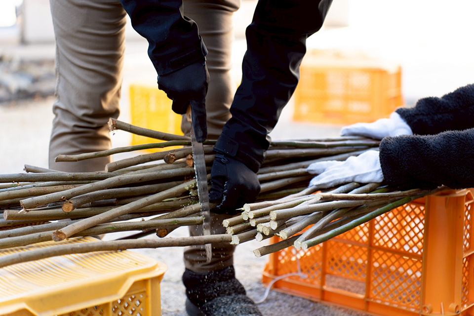 冬の剪定に合わせて、切り出したばかりの梅の枝を使った「梅飾りワークショップ」を開催しました。